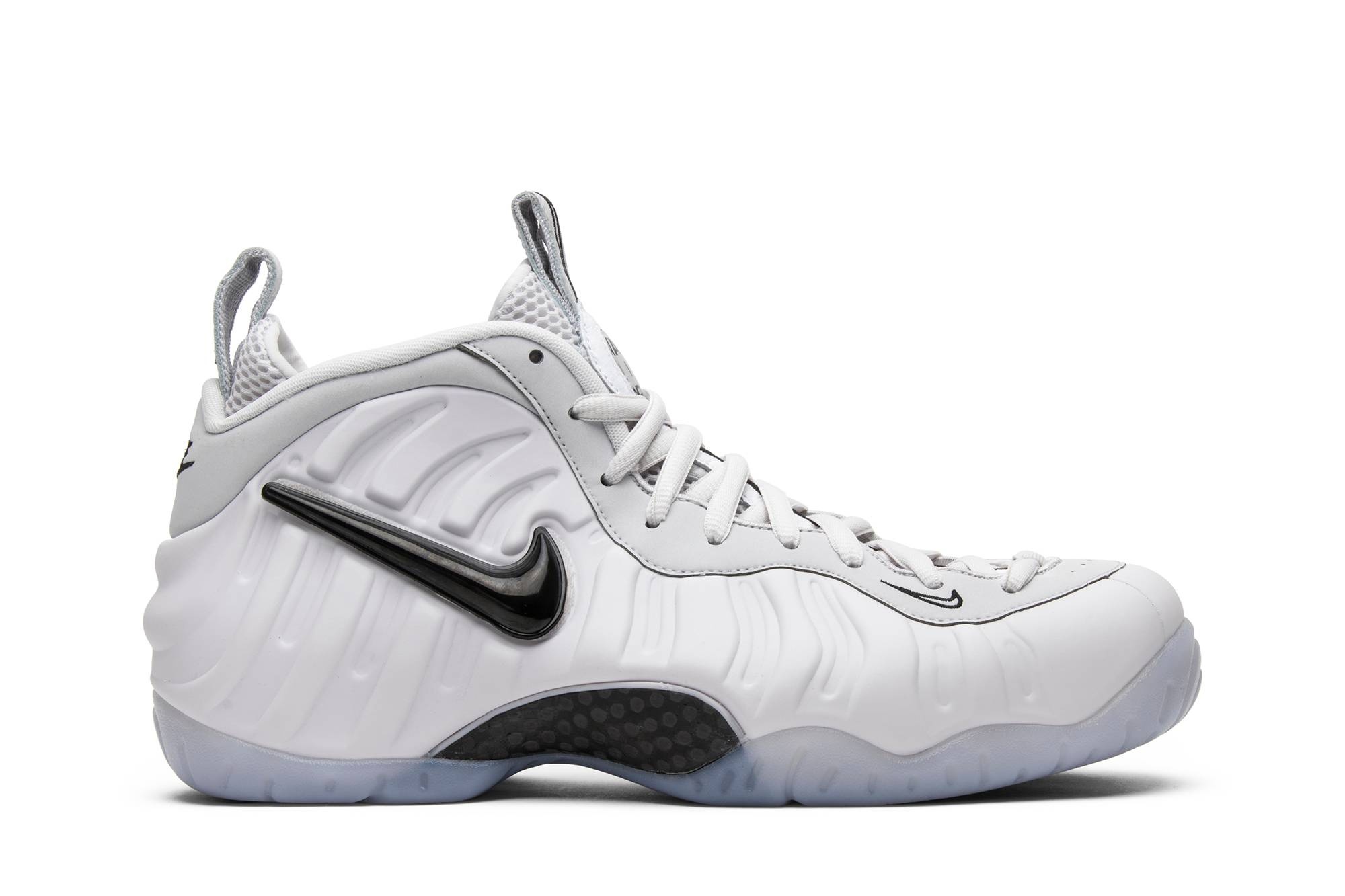 Released as part of NBA All-Star Weekend 2018, the Air Foamposite Pro All-Star 'Swoosh Pack' 2018 goes along with the customization theme seen throughout most of the All-Star releases. This colorway features a white Foamposite shell, a carbon fiber shank on the arch, and a milky translucent outsole. The Swoosh on the lateral profile is removable, which reveals a patch of velcro where you can use any of the five Swooshes included. UPPER MATERIAL Foamposite