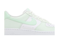 The Nike Air Force 1 Low 'Mint Foam' is crafted with a smooth leather upper, featuring a white base with mint green overlays at the forefoot and heel. A slightly darker shade of green distinguishes the Swoosh and back tab, branded with a Nike wordmark in embroidered lettering. Heritage details include a perforated toe box, variable width lacing, and a rubber cupsole with encapsulated Air-sole cushioning in the heel. UPPER MATERIAL Leather