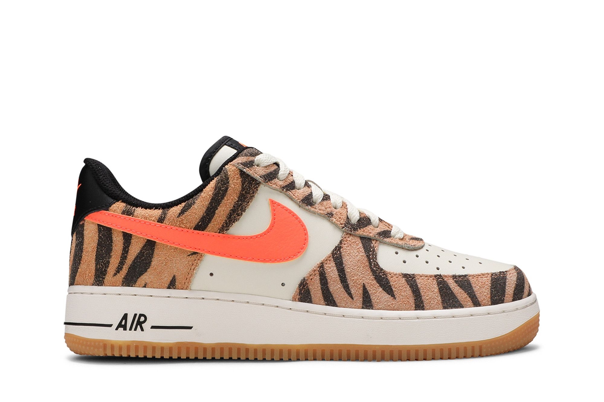 The Nike Air Force 1 Low Premium ‘Daktari Stripes’ takes direct inspiration from a duo of ‘Daktari’ Dunk Low colorways from 2003. The upper combines a leather base in Coconut Milk with zebra-print suede overlays in Atomic Orange. Additional orange accents settle on the Swoosh and Nike branding hits atop the brown leather heel tab and matching brown tongue tag. Underfoot, the AF1’s signature pivot-point outsole is rendered in grippy gum rubber. UPPER MATERIAL Suede
