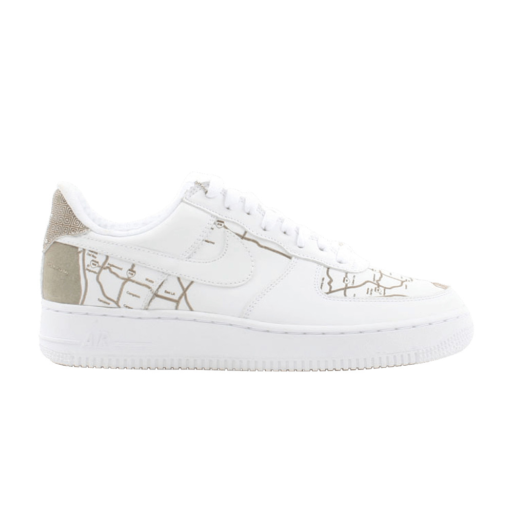 This limited edition Nike Air Force 1 Premium 'L.A. Mr.Cartoon’ was a quickstrike release in June 2006. The white leather upper is laser-cut with a gold map of Los Angeles’ freeways and an LA logo on the heel, designed by famed LA tattoo artist Mr. Cartoon. A crisp white sole unit with Air cushioning finishes off the look below.