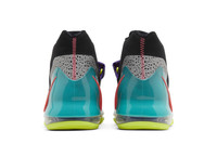 The Air Force Max ‘Multi-Color’ transforms the hoops shoe with a wild design that combines an array of vibrant hues. A black ripstop upper is accented by a purple midfoot strap, Hot Punch laces and a Volt tongue. No-sew overlays at the toe and heel feature speckled detailing resembling Nike’s safari print, while a full-length Max Air unit is supported underfoot by a Volt rubber outsole.