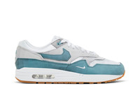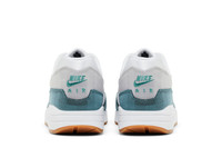 Dropping exclusively through .SWOOSH, Nike's web3 platform, the Nike Air Max 1 'Low Poly - Adventure Tomb Raider' showcases a color scheme inspired by video game heroine Lara Croft. The white mesh upper is contrasted by grey leather overlays and a teal-colored Swoosh and mudguard, with those components adopting a low-poly aesthetic highlighted by blocky, angular lines. A pixelated Nike tag adorns the tongue, while instructions on the sockliner reference a Tomb Raider cheat code from 1996. UPPER MATERIAL Nubuck