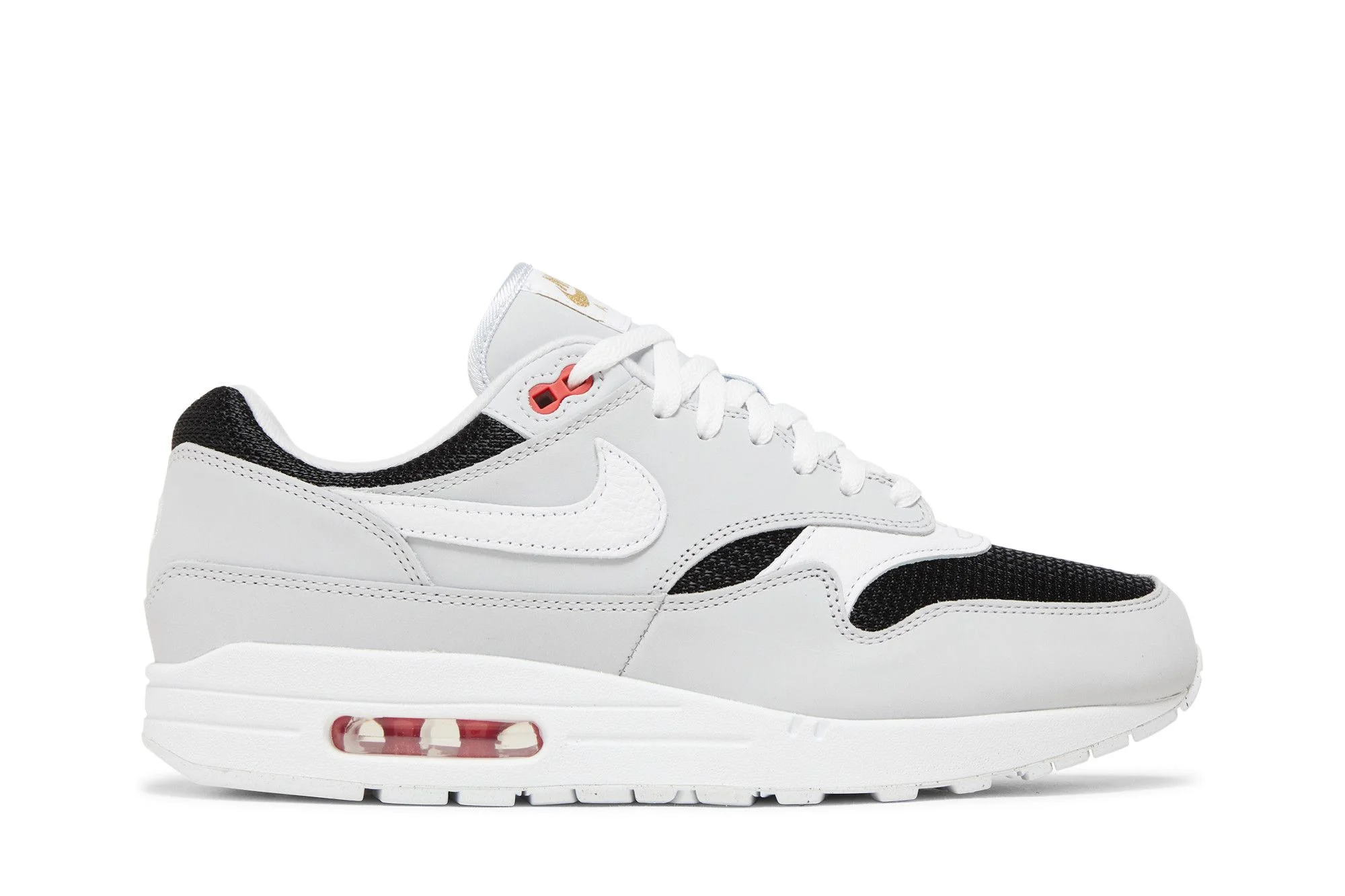 The 2023 edition of the Nike Air Max 1 ‘Urawa’ delivers the sequel colorway to a Japanese-exclusive AM1, released in 2004 as an homage to the Urawa Red Diamonds of Japan’s J1 football league. The retro runner makes use of an upper that combines breathable black mesh with leather overlays in Pure Platinum. Branding elements include a white leather Swoosh, a metallic gold Nike tongue tag, and a tonal dragon logo embroidered on the heel overlay. Crimson molded eyelets add a contrasting pop of color. Lightweight cushioning arrives via a white polyurethane midsole, featuring a red-tinted Max Air unit in the heel. UPPER MATERIAL Suede