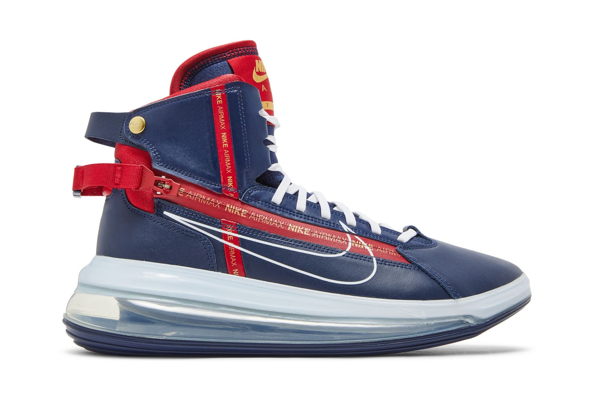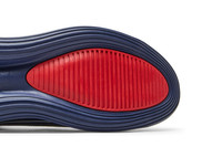 The Air Max 720 Saturn 'Midnight Navy' updates the silhouette that took Nike’s Max Air to new heights in the form of a lifestyle shoe. Released in June 2018, the shoe is equipped with leather overlays and a neoprene sock-like collar. Dressed in a multi-tone colorway, the upper is decorated with branded strips and outlined Swooshes. Down below, the running sneaker is topped off with 720 degrees of Max Air cushioning, the tallest Max Air unit at the time of its release.