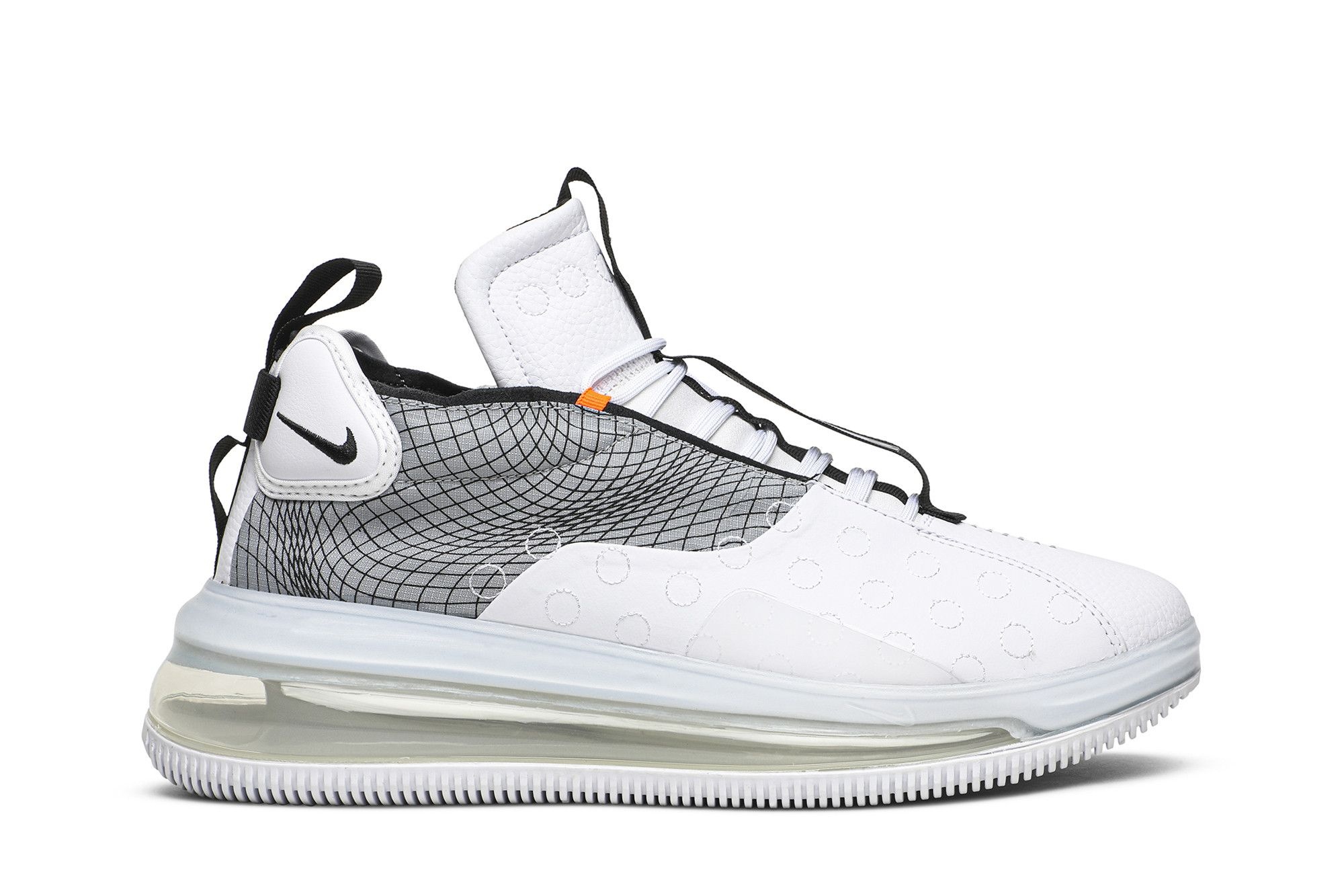The Air Max 720 Waves from Nike's 'D/MS/X' label creates a new definition of court style using inspiration drawn from street culture. Issued in October 2019, this version has a Wolf Grey ripstop upper with a warped grid pattern and an embroidered leather forefoot. Classic lacing with color-pop loops and padded heel pods push a traditional aesthetic. A grooved rubber outsole wraps around the full-length Max Air bubble.