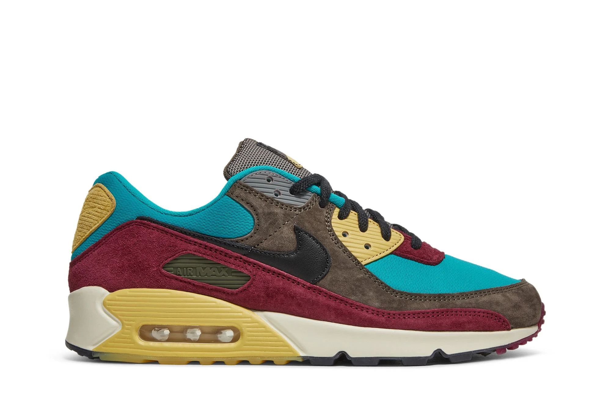 The Nike Air Max 90 NRG ‘Ridgerock’ showcases elevated construction and a clashing combination of colors. The retro runner makes use of a bright teal mesh upper, fortified with suede overlays in autumnal brown and burgundy hues. A cropped black leather Swoosh adorns the quarter panel, while Saturn Gold accents land on the molded eyelets and Nike-branded heel patch. The sneaker rides on a cushy off-white polyurethane midsole, enhanced with a yellow-tinged Air-sole unit in the heel. UPPER MATERIAL Mesh