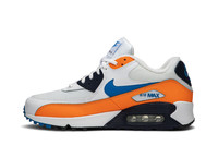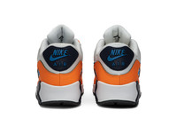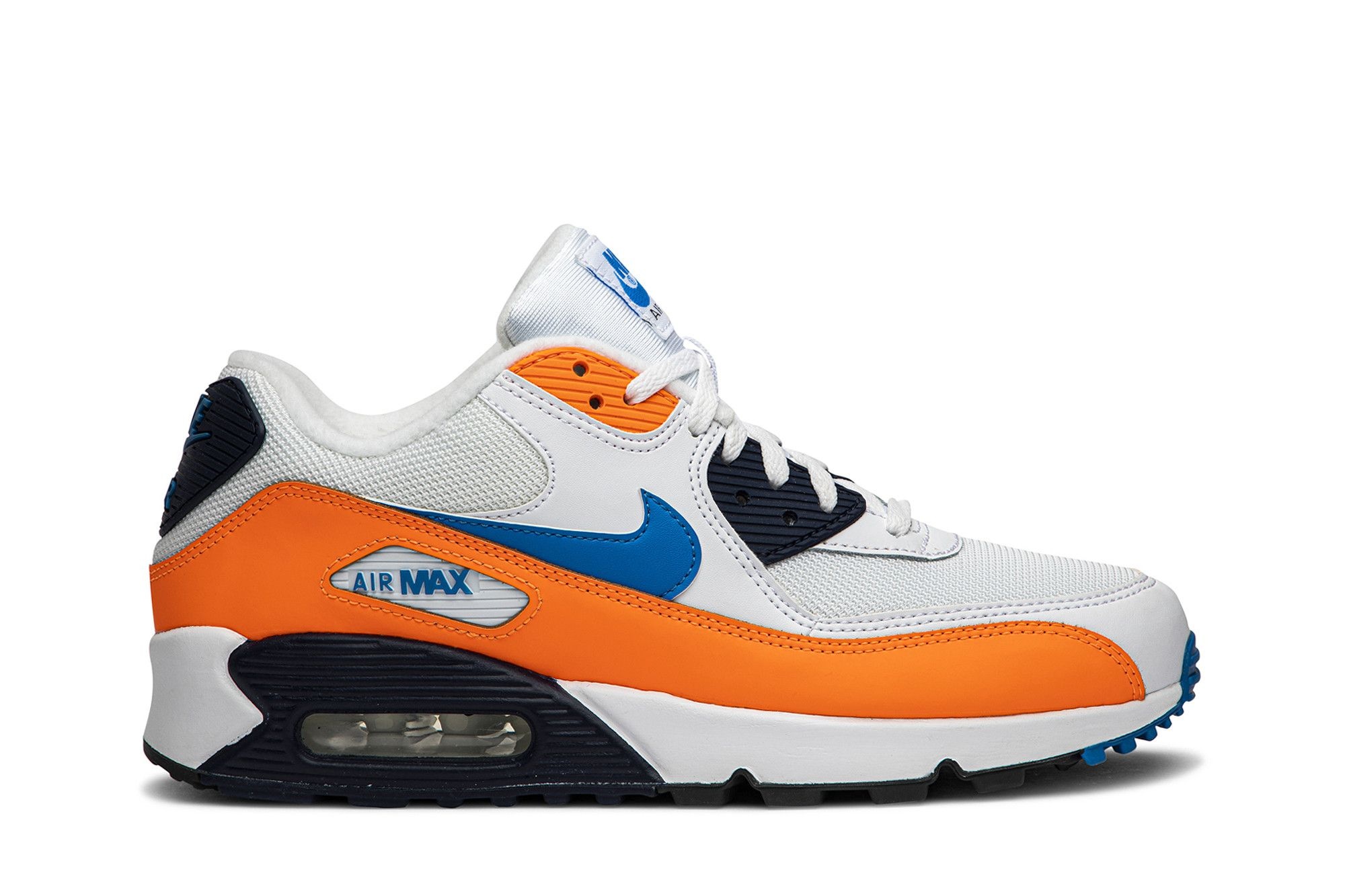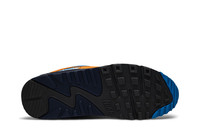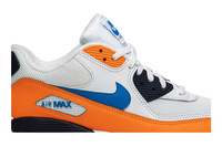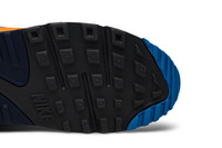 The Nike Air Max 90 'Orange Blue’ sports an upper made of leather and mesh. The April 2019 release contrasts a darker Midnight Blue on the lower eyelet and heel panel against the brighter Photo Blue on the Swoosh. The words ‘AIR MAX,’ also in Photo Blue, pop out against the orange mudguard. The classic Max Air unit is enveloped by Midnight Blue, the color also found on the heel tab with the ‘Nike AIR’ logo. UPPER MATERIAL Leather