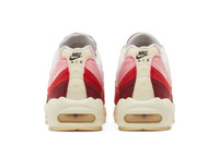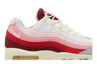 The Nike Air Max 95 ‘Anatomy of Air’ taps into the shoe’s design origins, highlighted by unique details that take cues from the human anatomy. Twisted rope laces secure a synthetic suede upper built with wavy side overlays in muscle-inspired colors. Gradient tones ranging from pink to burgundy are contrasted by a suede toe cap in a neutral grey finish. Lightweight cushioning comes courtesy of a cream-colored polyurethane midsole with visible Air-sole units in the forefoot and heel. UPPER MATERIAL Suede