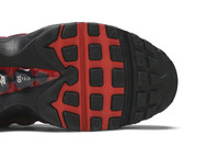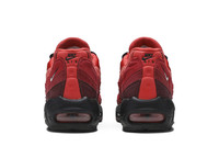The upper of the Nike Air Max 95 ‘Habanero Red’ starts with a mesh underlay that shifts quickly into buttery suede overlays, with a tonal red gradient that fades from light to dark. This take on Sergio Lozano's 1995 classic design is balanced with Black and White accents across the shoe. At the bottom, visible Max Air cushioning in the forefoot and heel provides a responsive feel.
