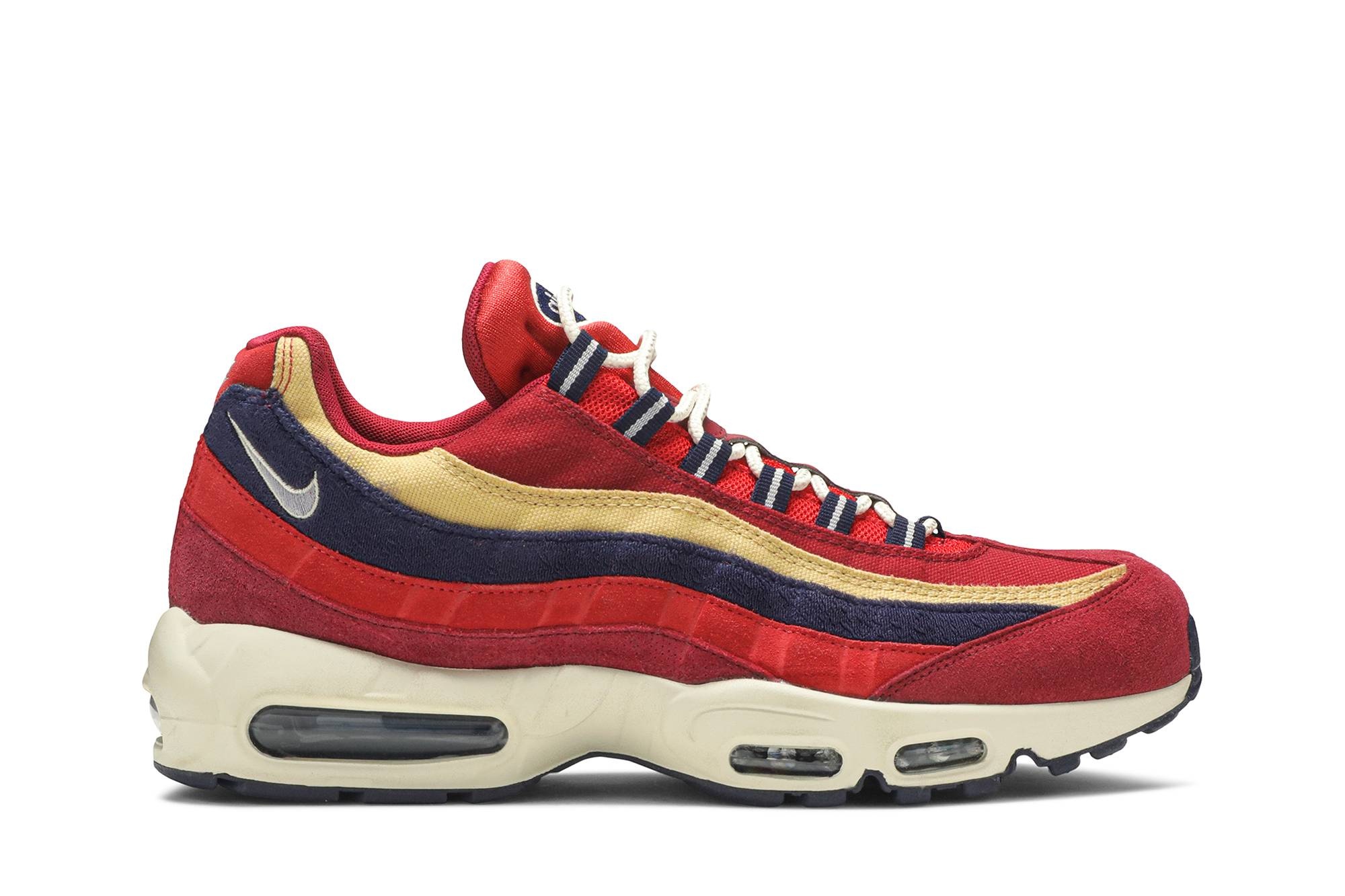 The Nike Air Max 95 honored the human figure when Sergio Lozano first conceived it in 1995. This Premium 'Red Crush' iteration retains the iconic look while offering something fresh in the process. The multicolored suede, textile and mesh upper takes on a different spirit using quick-pull laces and depressions in the signature wave panels. Embroidered branding, midsole Max Air units and the Waffle outsole are standard.