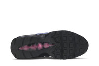 Taking cues from the human anatomy, the Sergio Lozano-designed Nike Air Max 95 sneaker is an iconic lifestyle model equipped with signature Air technology. Defined by its signature rippled uppers inspired by the vertebrae of the human body, this March 2019 'Throwback Future' edition sports a tri-tone aesthetic that stacks iridescent panels of Black and purple overlays atop each other. A full-length Air-Sole unit highlighted in Laser Fuchsia reinforces the design.