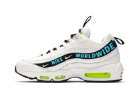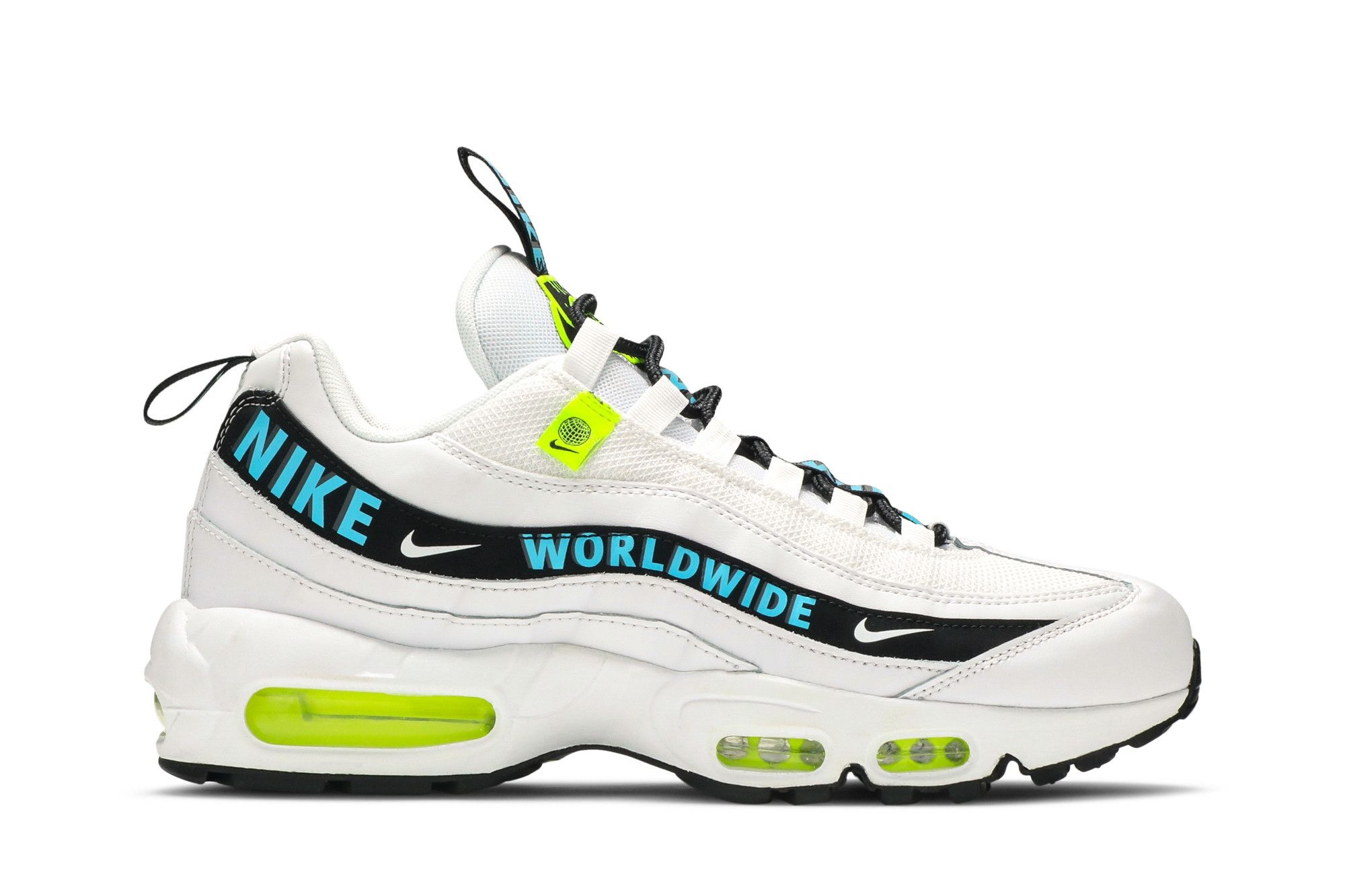 The Nike Air Max 95 ‘White’ is drawn from the ‘Worldwide Pack,’ an expansive footwear collection inspired by the unifying power of sport. The retro runner makes use of a white leather upper, accented with ‘Nike Worldwide’ printed on an extended pull tab atop the tongue and wavy side overlays in a contrasting black finish. Additional Nike Worldwide graphics are rendered in a neon green hue, matching the sneaker’s visible Max Air cushioning. UPPER MATERIAL Canvas