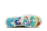 The Nike Air Max 97 Golf NRG ‘Tie-Dye’ features a multicolor psychedelic print as a tribute to San Francisco, home of the 2020 PGA Championship and 1967’s Summer of Love. The swirling hues are offset by signature wavy overlays in a subdued off-white finish. A matching foam midsole houses a full-length Max Air unit for lightweight cushioning. Underfoot, translucent high-traction outsoles reveal ‘Peace’ and ‘Love’ graphics on each shoe.