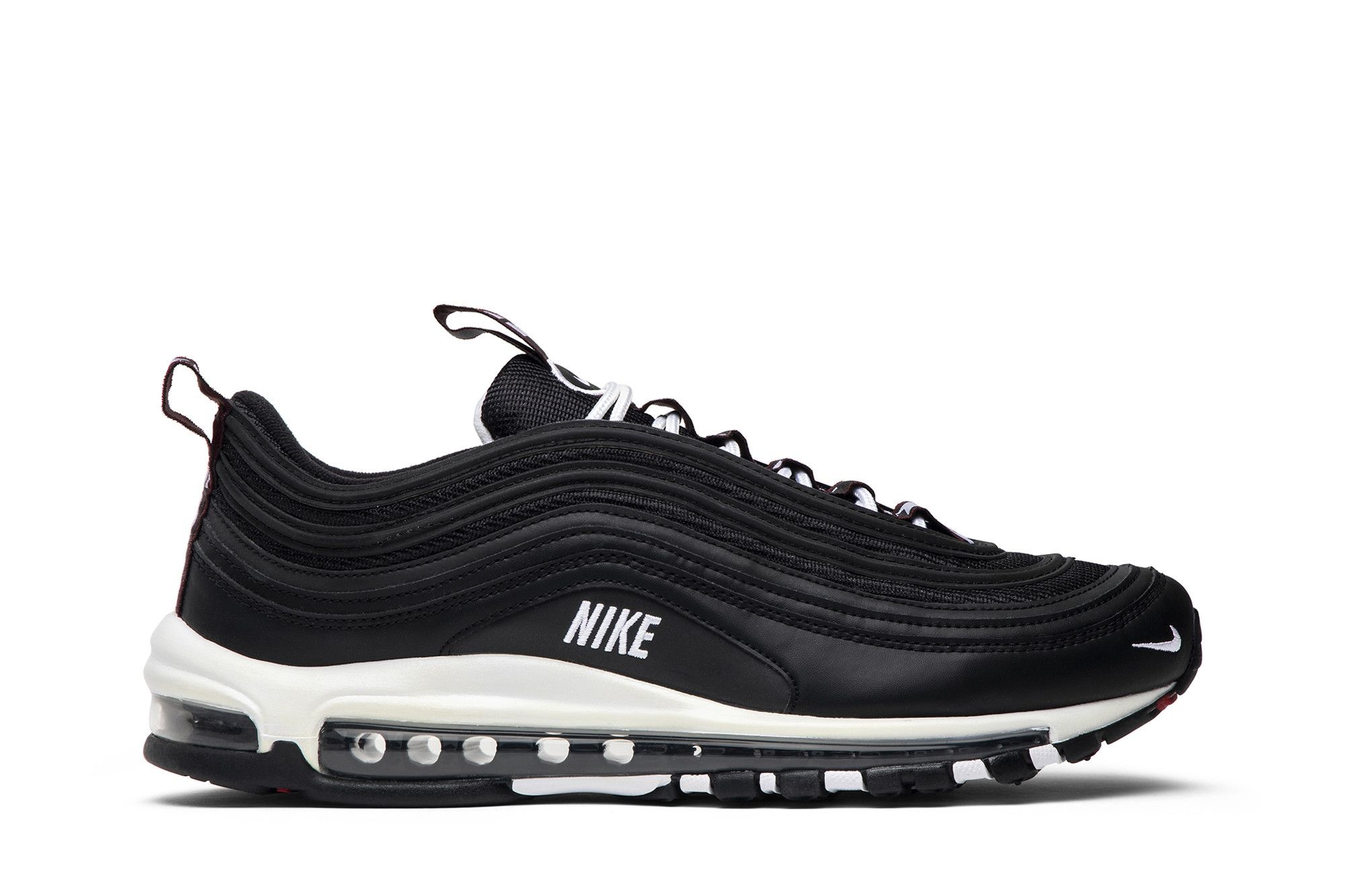 The Nike Air Max 97 Premium ‘Black White’ showcases prominent logos throughout the upper, in line with the theme of Nike Sportswear’s Overbranded collection. In addition to a stylized ‘Air Max’ print on the tongue and heel loop, the all-black upper is accented with reflective detailing on the signature wavy overlays. A full-length Max Air unit is supported underfoot by a durable rubber outsole.