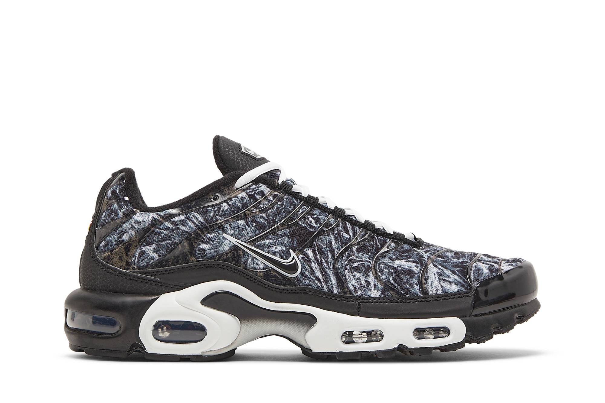 The Nike Air Max Plus ‘Shattered Ice’ features a design theme centered around outdoor fun in the wintertime. An allover cracked-ice print is applied to the mesh upper, reinforced with black synthetic leather overlays and a wavy TPU cage inspired by palm trees swaying in the wind. Branding hits include a jewel Swoosh and a Tuned Air heel badge. Lightweight cushioning is provided by an Air-assisted polyurethane midsole, fitted with a prominent midfoot shank that resembles a modified whale tail. UPPER MATERIAL Mesh