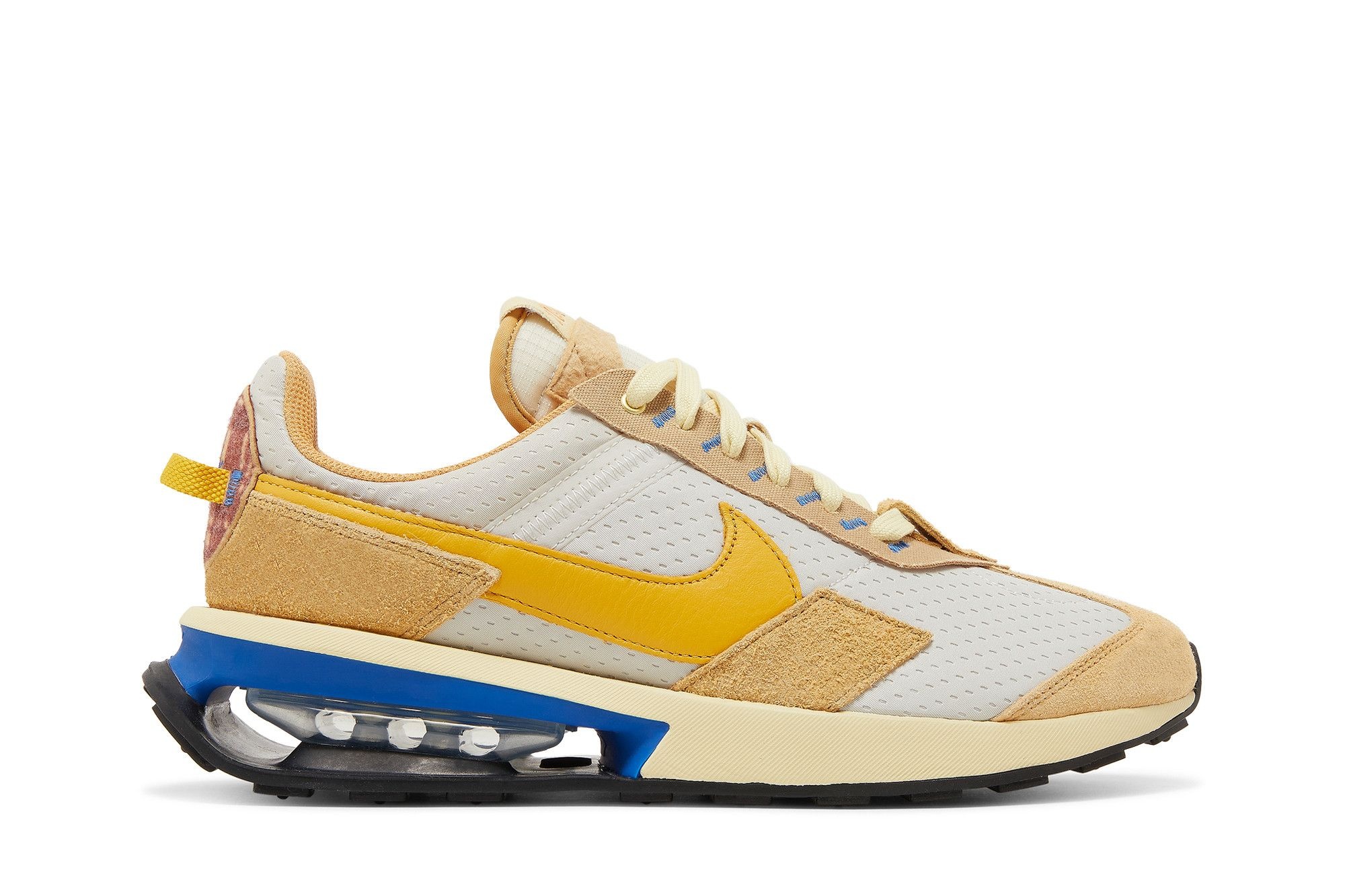 The Nike Air Max Pre-Day ‘WarmCore’ showcases plush materials on a retro-inspired lifestyle runner equipped with fully-exposed Air-sole cushioning. The upper is constructed from perforated off-white nylon with an oversized yellow leather Swoosh and beige hairy suede overlays. Blue stitching appears on the canvas eyestay and felted heel overlay, featuring an extended pull loop for easy on and off. The sneaker rests on a cream-colored foam midsole with a cored-out heel, framed in Game Royal trim and fitted with a bouncy Air-sole unit. A waffle-tread rubber outsole provides grippy traction underfoot. UPPER MATERIAL Polyester
