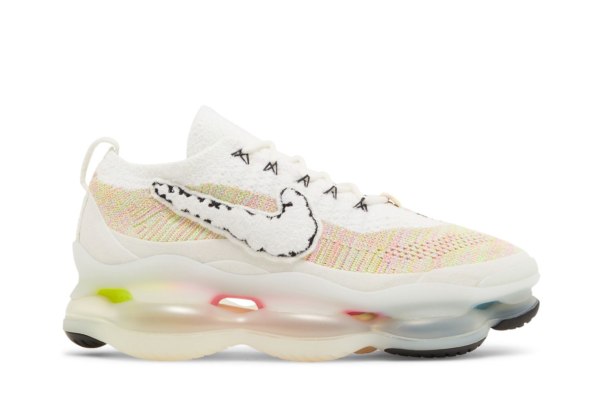 The Nike Air Max Scorpion ‘Air Max Day’ delivers a special-edition colorway of the buoyant lifestyle runner as part of Nike’s 2023 festivities celebrating March 26. The upper combines multicolor Flyknit with white chenille detailing on the collar, tongue, and fluffy lateral-side Swoosh. A cartoon eye peers out from the tongue, while custom Air Max Day-themed artwork decorates each sockliner. Underpinning the sneaker is a massive Air-sole unit, its bulbous proportions highlighted by interior pops of color in yellow and hot pink. UPPER MATERIAL Flyknit