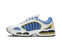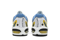 The Air Max Tailwind 4 ‘Photo Blue’ showcases a straightforward color scheme reminiscent of the sneaker’s OG releases from 1999. The upper combines white synthetic leather with Light Photo Blue accents on the mesh collar and textile side panel. The latter is outlined in Speed Yellow detailing and overlaid with tonal TPU fingers for added support. The retro runner rides on a flexible foam midsole fitted with visible Max Air units in the heel and forefoot.