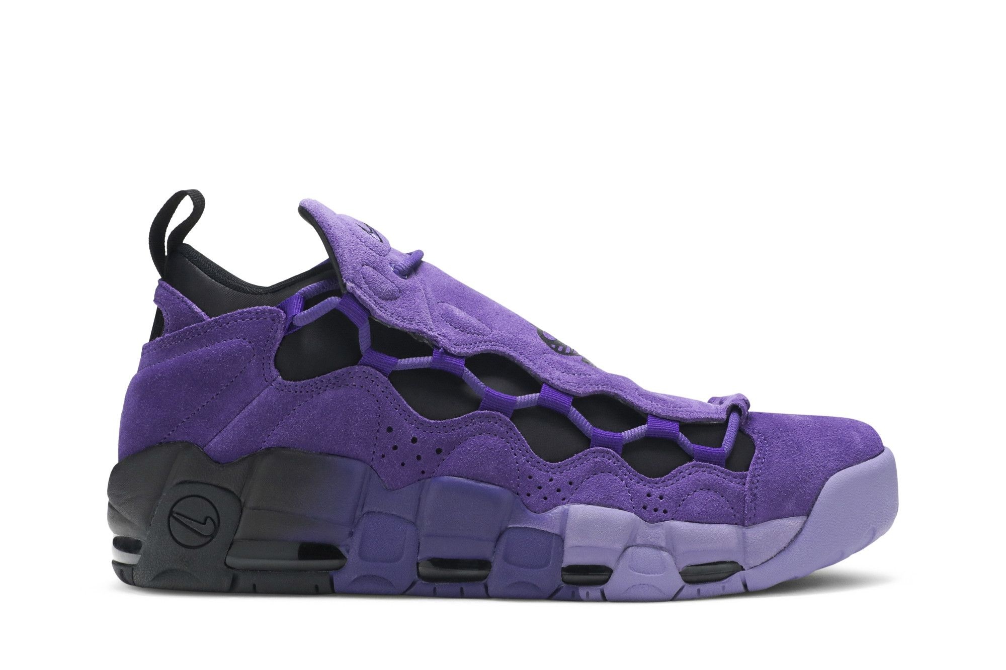 Combining the upper of the Air Money with the tooling of the Air More Uptempo, the Nike Air More Money showcases a unique look, one that’s made even bolder by this tonal purple colorway. Both the removable shroud and heel panel feature suede construction and dollar signs embroidered in black, while the midsole is finished in a purple-black gradient effect. Gold lace-tips add to the cash-rich design. UPPER MATERIAL Suede