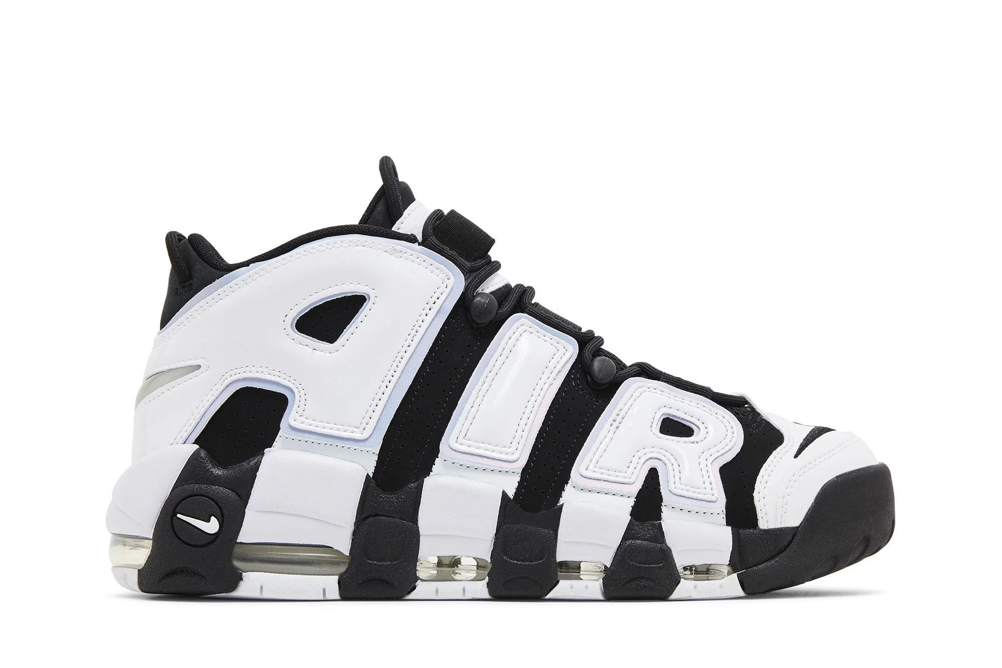 The Nike Air More Uptempo ‘Cobalt Bliss’ revives the ‘90s hoops shoe that embodies the bold hardwood aesthetic of that bygone era. The bulky mid-top sports a black nubuck upper, accented with white leather ‘AIR’ lettering outlined in light blue trim. A speed lacing system combines with elastic straps to provide a secure fit, while the tongue is constructed from padded mesh for improved breathability. The lines of the graffiti-style ‘AIR’ graphic extend to the midsole, featuring visible Air-sole cushioning for a smooth ride. UPPER MATERIAL Leather