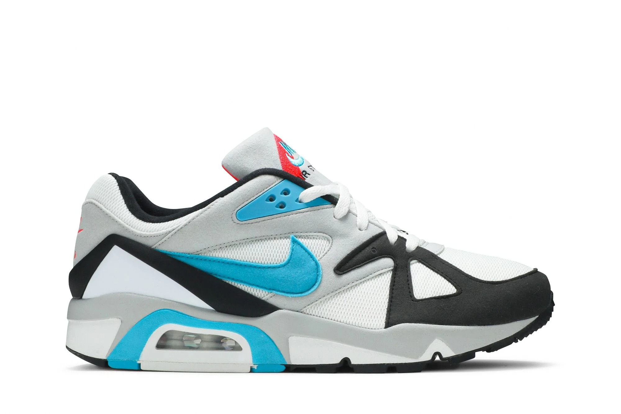 The 2021 reissue of the Nike Air Structure Triax 91 OG ‘Neo Teal’ brings back the original colorway of the vintage runner on the occasion of its 30th anniversary. The upper is constructed from breathable white mesh with an angular TPU heel clip and synthetic suede overlays in grey and black. Mismatched accents in Neo Teal and Infrared enliven the sneaker’s lateral and medial sides, respectively. Visible Max Air cushioning combines with a waffle-tread outsole to deliver a smooth ride. UPPER MATERIAL Mesh