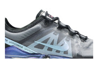The Nike Air VaporMax 2019 sneaker veers away from conventional elements in a dynamic profile. This 'Throwback Future' rendition—issued in in March 2019—fuses nostalgic roots and a futuristic palette in a woven, semi-transparent upper with an internal midfoot cage affixed to the laces and a reinforced heel. Logotypes and Swooshes are updated in a metallic finish. Air lugs further the aesthetic underfoot.