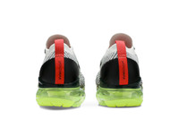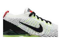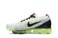 The Nike Air VaporMax Flyknit 3 from the 'Neon' collection is a bold tribute to heritage. Delivered in April 2019, the sneaker flaunts a striped textile upper designed with bright Flywire lacing cables and a reinforced heel counter. The 'Bright Crimson' Swoosh on the tongue is updated in 3D appearance. A high-visibility Volt hue calls attention to the pressurized cushioning pods that form the springy sole. UPPER MATERIAL Flyknit