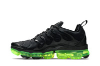 The Nike Air VaporMax Plus 'Black Volt' sneaker adds a splash of neon green to a glossy black upper for an elevated touch on the innovative silhouette. The hybrid design borrows from the Air Max Plus and the VaporMax and introduces a revamped Air unit, skillfully attached directly to the upper—without foam—allowing the foot to feel the responsive, springy step more than ever before. Rubber pods are placed strategically in high-wear areas to help enhance durability.