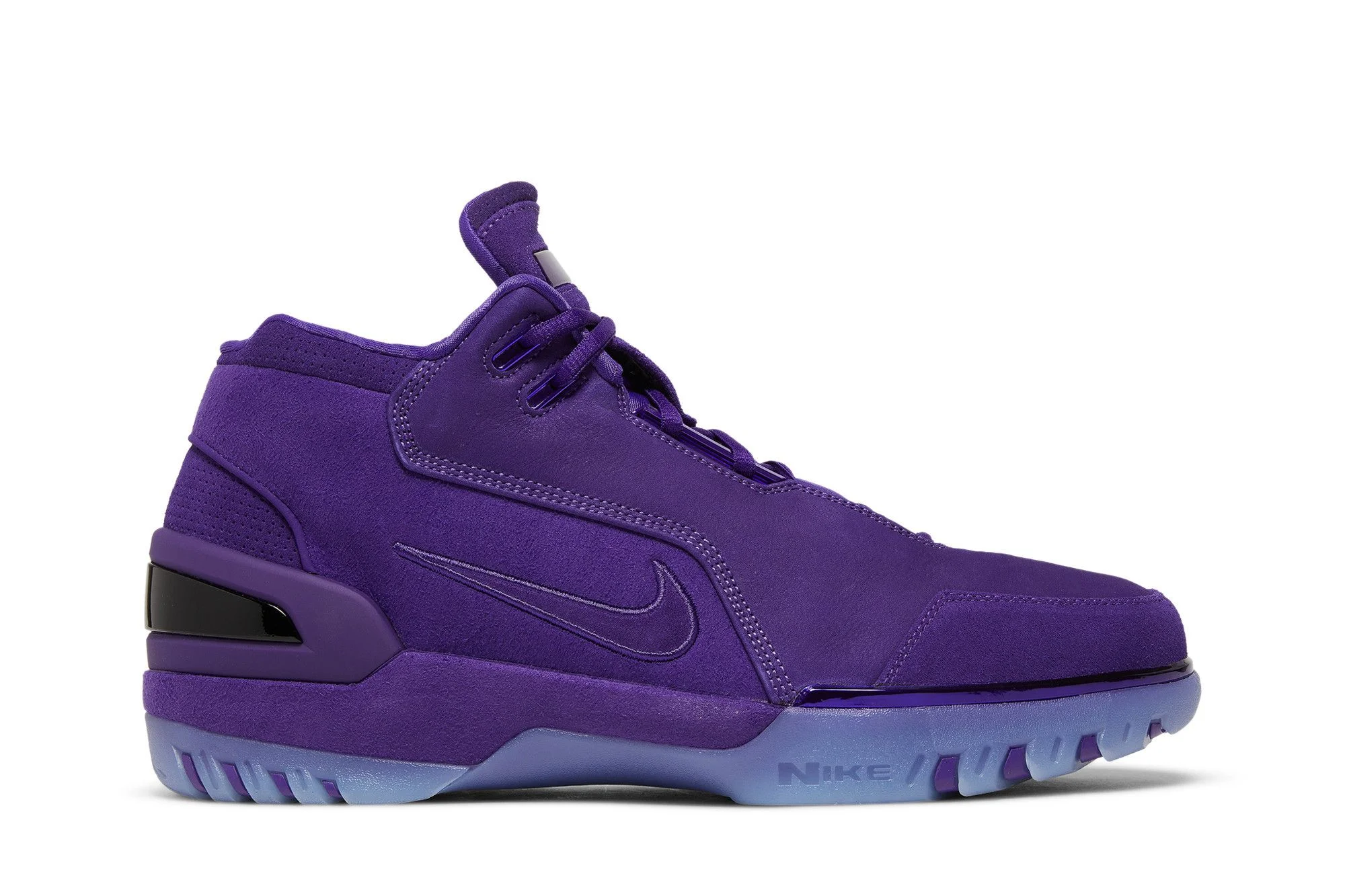 The Nike Air Zoom Generation Retro ‘Court Purple’ brings back a PE colorway that LeBron James debuted on the NBA hardwood in 2018, commemorating the athlete’s first season with the Los Angeles Lakers. The throwback silhouette carries a monochromatic suede upper in a bold violet finish. Perforated suede is utilized on the mid-cut collar and heel, while a mesh insert offers improved breathability on the medial side. A matching purple Phylon midsole packs a springy Zoom Air unit in the forefoot and a shock-absorbing Air bag in the heel. UPPER MATERIAL Suede