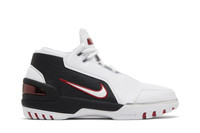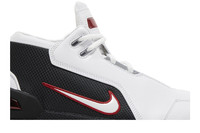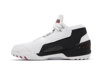 The 2023 edition of the Nike Air Zoom Generation Retro ‘Debut’ brings back LeBron James’ premier signature shoe in the OG colorway from 2003. The upper combines smooth white leather with black mesh paneling that wraps around the heel and extends into the midfoot. Outlined in crimson embroidery, a floating white Swoosh adorns the lateral side. Performance benefits are highlighted by a lightweight Phylon midsole, fitted with springy Zoom Air in the forefoot and a cushioned Air-sole unit in the heel. Underfoot, the durable rubber outsole features an exposed carbon fiber shank and an oversized herringbone tread. UPPER MATERIAL Leather