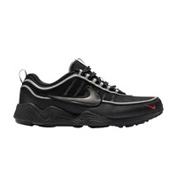 The Nike Air Zoom Spiridon SP 'Black Sport Red' revives the classic '97 running shoe in an OG colorway. Laces feed through webbing eyelets to secure the black mesh upper, featuring reflective piping that garlands the eyestay, collar and toe box. Outlined in black embroidery, a gleaming silver Swoosh adorns the quarter panel, while a crimson mini-Swoosh graces the lateral forefoot. Wavy lines are etched along a solid black Phylon midsole enhanced with full-length Zoom Air cushioning. UPPER MATERIAL Mesh