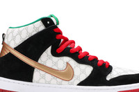 The Black Sheep x Nike Dunk High SB 'Paid In Full' pays tribute to the critically acclaimed Rakim and Eric B. song. Canceled immediately after it was unveiled, the sneaker references the bespoke Dapper Dan jackets worn by the hip-hop legends on the cover of the title album with an interlocking 'SB' monogram. Metallic Gold Swooshes and thick laces represent their signature dookie rope chains, while the green interior and tongue patch symbolize the dollar bill background. UPPER MATERIAL Suede