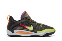 Designed in collaboration with the Canadian hip-hop producer, the Boi-1da x Nike KD 15 ‘Producer Pack - 86 BPM’ reflects Kevin Durant’s passion for music. The upper is composed of black perforated leather and patterned knit textile in black and grey. Integrated into the laces, charcoal TPU wings are contrasted by a signature Swoosh in a gradient blend of neon green and fuchsia. ’86 BPM’ is embroidered across the back heel, while mismatched tongue branding features KD’s logo on the left tongue and Boi-1da’s signature on the right. Performance benefits include an Air Zoom Strobel, Cushlon midsole, and a grippy rubber outsole inspired by a topographical map. UPPER MATERIAL Mesh
