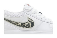 The Nike Book 1 'Rattlesnake' showcases a greyscale snakeskin Swoosh on the off-white upper, featuring a smooth leather build with textile side panels. Contrasting crimson accents stand out on the woven 'Book' tongue tag, as well as the '96' — referencing Devin Booker's birth year — imprinted on the pull tab. The cushioning setup takes the form of a lightweight Cushlon midsole, caged with a rigid TPU sidewall on the lateral side and fitted with a top-loaded Zoom Air unit in the heel. UPPER MATERIAL Leather
