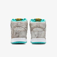The upper of the 'Flamingo' edition of the Dunk High Premium SB is finished with a grey cracked-earth effect, the design sitting in stark contrast to the Hyper Jade touches on the outsole and inner lining. The insole reveals the inspiration for the shoe’s name, sporting a cartoon flamingo graphic. Keeping skate performance in mind, the shoe includes Zoom Air cushioning in the midsole and a padded collar.