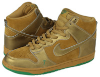 Limited to just 777 pairs, the Dunk High Pro SB ‘Lucky’ released in July 2004 alongside a contrasting ‘Unlucky’ colorway. The high-top features simple color blocking throughout the upper, highlighted by metallic gold overlays atop a suede construction in Wheat. Contrasting green is applied to the embroidered ‘7’ on the lateral forefoot as well as the rubber outsole underfoot.