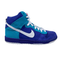 This 2010 Quickstrike Nike Dunk High Pro SB 'Oceanic Airlines' draws inspiration from the color scheme of the fictional Oceanic Airlines featured in various film and television shows, including the hit TV show Lost. It comes rendered with an all-suede upper with German Blue and Chlorine Blue panels, offset with white accents on the Swoosh, mesh tongue and outsole. The insoles feature a radar-like map of Earth.