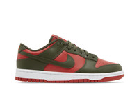 The Nike Dunk Low ‘Cargo Khaki Mystic Red’ is clad in a two-tone leather upper, featuring a tomato-red base with dark olive green overlays and a color-matched Swoosh. Traditional Nike branding hits make their way to the back tab, sockliner, and the woven tag that adorns the breathable nylon tongue. The rich earth tones up top are offset by a crisp white midsole, assembled with stitched sidewall construction and an interior foam wedge. A red rubber outsole provides grippy traction underfoot. UPPER MATERIAL Leather