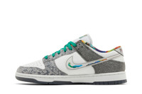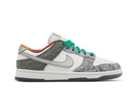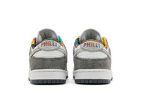 The Nike Dunk Low Premium ‘Philly’ pays tribute to the City of Brotherly Love. Green laces, marked with the geographic coordinates of Philadelphia, secure the upper, featuring a white tumbled leather base with contrasting greyscale accents. The heel overlay is built with hairy suede, while a forefoot overlay showcases mottled leather construction. Cracked leather in a light grey shade covers the lateral Swoosh and back tab, stamped with a ‘PHILLY’ wordmark in multicolored lettering. The mixed hues make repeat appearances on the Nike tongue tag and textile collar lining. The sneaker rests on a white midsole, supported underfoot by a dark grey translucent rubber outsole. UPPER MATERIAL Leather
