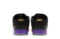 Nike celebrated Black History Month 2014 by putting an exclusive colorway on the SB Dunk Low. The premium suede application on the upper incorporates a heritage design on the heel with reflective 3M detailing. The tongue logo incorporates a traditional BHM logo that matches the gold lace dubraes, while the insole carries the same pattern as the heel with the addition of purple accents. The midsole features a purple-to-red gradient, and a translucent outsole sits underfoot.