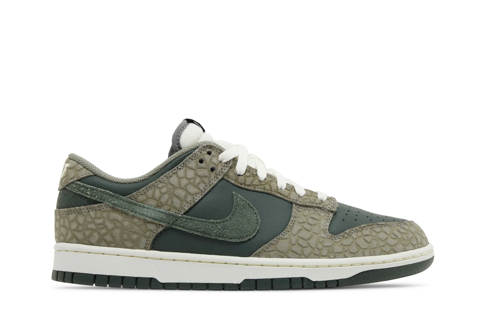 The Nike Dunk Low Premium 'Urban Landscape 2.0' features a green leather upper with a tonal suede Swoosh. An embossed crackle pattern enlivens the forefoot and heel overlay, as well as the Nike-branded back tab. Anchoring the sneaker is an off-white rubber midsole, built with stitched sidewall construction and an interior foam wedge for lightweight cushioning. A green rubber outsole provides grippy traction underfoot. UPPER MATERIAL Leather