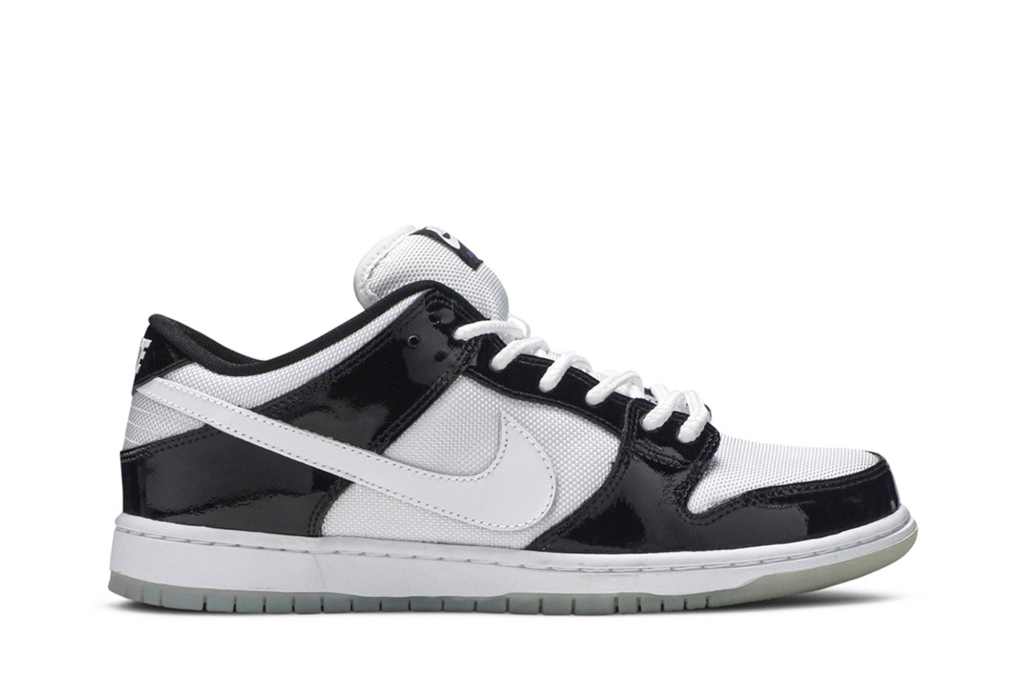 Nike SB borrows another move right out of the Jordan playbook with the Concord offering of the Dunk Low. The shoe is constructed with white mesh panels on the upper accented with black patent leather paneling on the overlays. The outsole sports an icy blue tone, a final call out to the iconic Air Jordan 11 colorway.