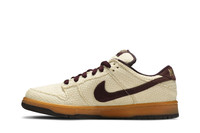 Originally unveiled in 2004, the Nike SB Dunk Low Pro emerges with a woven hemp application on the upper with burgundy contrasting on the branding, sockliner, laces and outsole. The shoe incorporates a gum finish on the midsole to match the neutral tones and Nike SB branding on the tongue logo. This colorway released alongside a green and blue hemp Dunk Low.