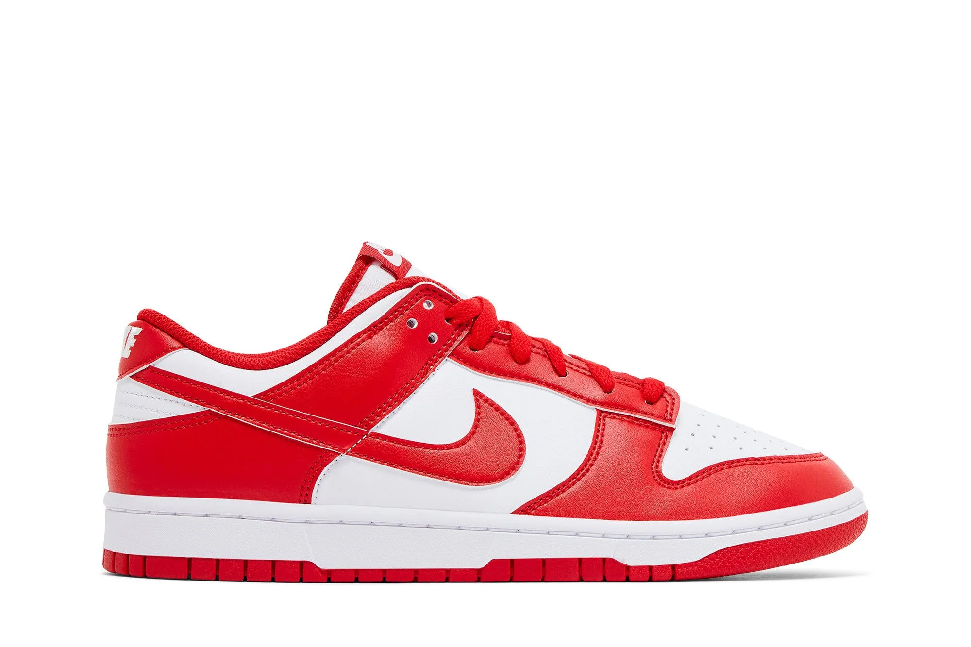 The 2025 edition of the Nike Dunk Low 'St. John's' delivers a low-top edition of a collegiate colorway initially introduced via the Be True to Your School series from 1985. Like the original, the leather upper features contrasting crimson accents on the forefoot and heel overlay, as well as the signature Swoosh. A padded collar provides a comfortable fit, while perforated detailing on the toe box offers improved breathability. Anchoring the sneaker is a sturdy rubber cupsole. UPPER MATERIAL Leather