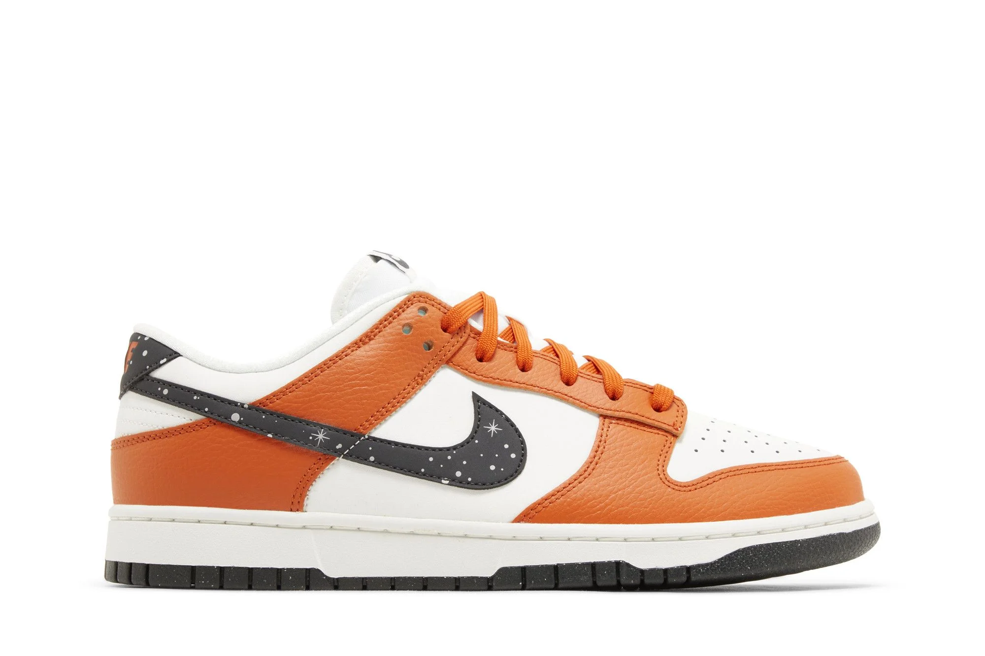 The Nike Dunk Low ‘Starry Swoosh’ showcases an all-leather upper, finished in a crisp white base with Campfire Orange overlays at the forefoot and heel. Reflective stars glitter on the signature Swoosh and Nike-branded back tab. Anchoring the low-top is a durable cupsole, featuring stitched sidewall construction and an interior foam wedge. A black rubber outsole provides durable traction underfoot. UPPER MATERIAL Leather