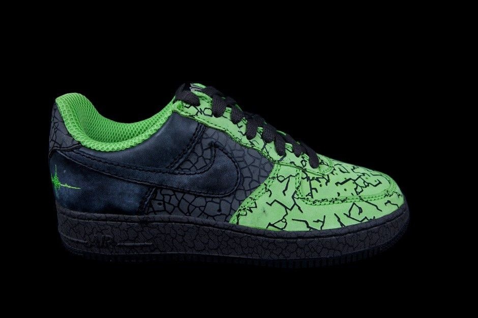 A 2006 collaboration between Nike, Keith Hufnagel’s HUF and designer Benny Gold, this Nike Air Force 1 03 ‘Hufquake' recognizes the 100th anniversary of the devastating 1906 San Francisco earthquake. The classic basketball sneaker is given an allover earthquake crack detailing, which appears on the upper’s black and bright green colorway. The fire-damaged leather gives a further nod to the event, as does the seismic scale on the heel. UPPER MATERIAL Nubuck