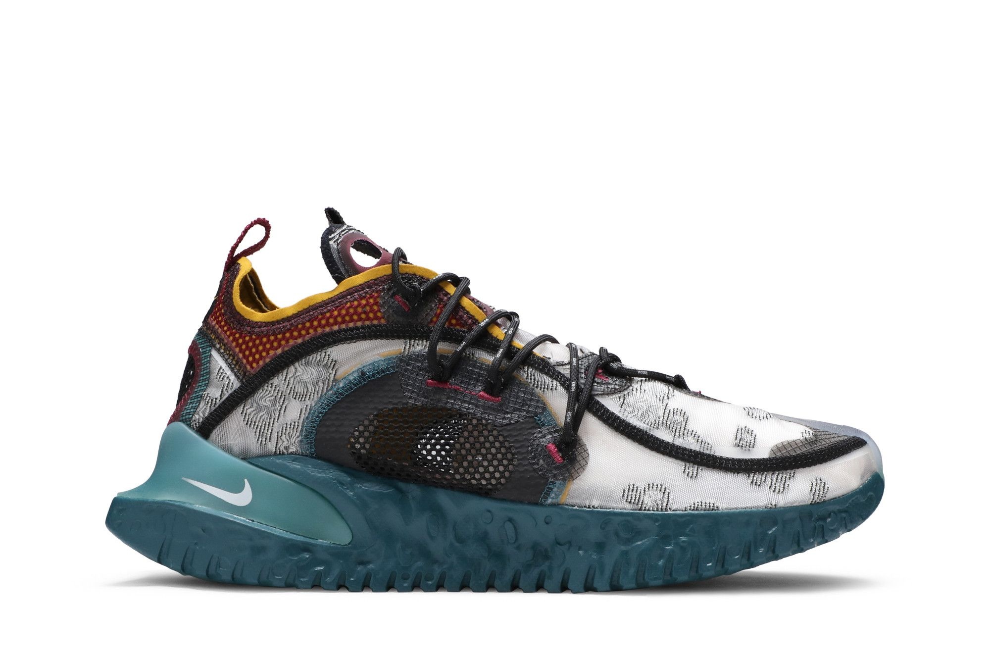 The Nike ISPA Flow 2020 ‘Dark Teal Green’ showcases rich earth tones on a futuristic lifestyle silhouette that combines an airy build with plush cushioning. A unique lacing system, featuring a pull string on the tongue, secures a grey woven upper with strategically placed translucent mesh paneling in burgundy and black. A teal-colored TPU heel clip is matched by a textured foam midsole, supported underfoot by durable rubber pods in high-wear areas. Atop a thin open-hole tongue, a webbing pull tab is marked with ISPA branding. UPPER MATERIAL Woven
