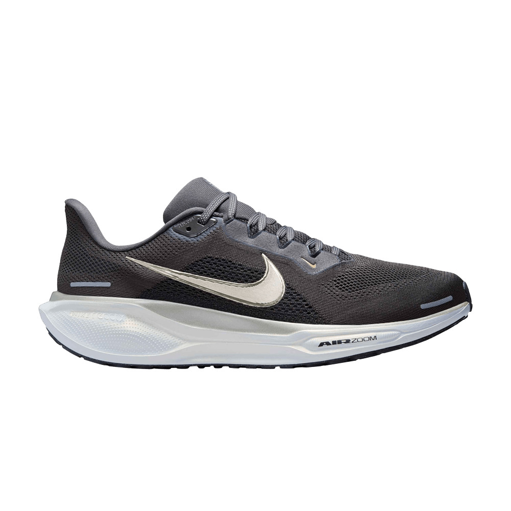 The Jakob Ingebrigtsen x Nike Air Zoom Pegasus 41 'Medium Ash' utilizes a grey engineered mesh upper, featuring reflective accents at the tongue and heel. A Dynamic Midfoot Fit system, which integrates the laces with an internal midfoot band, provides a locked-in fit. Lightweight cushioning arrives via a full-length ReactX foam midsole with Zoom Air units in the forefoot and heel. UPPER MATERIAL Mesh