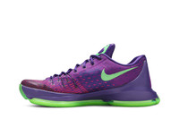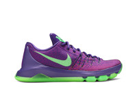 In 2014, Kevin Durant received his first MVP award, naturally Nike released a colorway to celebrate this achievement. The KD 8 'Suit' boasts a Court Purple Flyweave upper with Vivid Purple details on the toe box and Flywire cables for support. The low also sports a padded tongue for added comfort, a full-length Zoom Air unit in the Phylon midsole for responsive cushioning, and a foam heel counter. To make the shoe pop, Green Strike accents can be found on the outsole, tongue, and Swoosh.