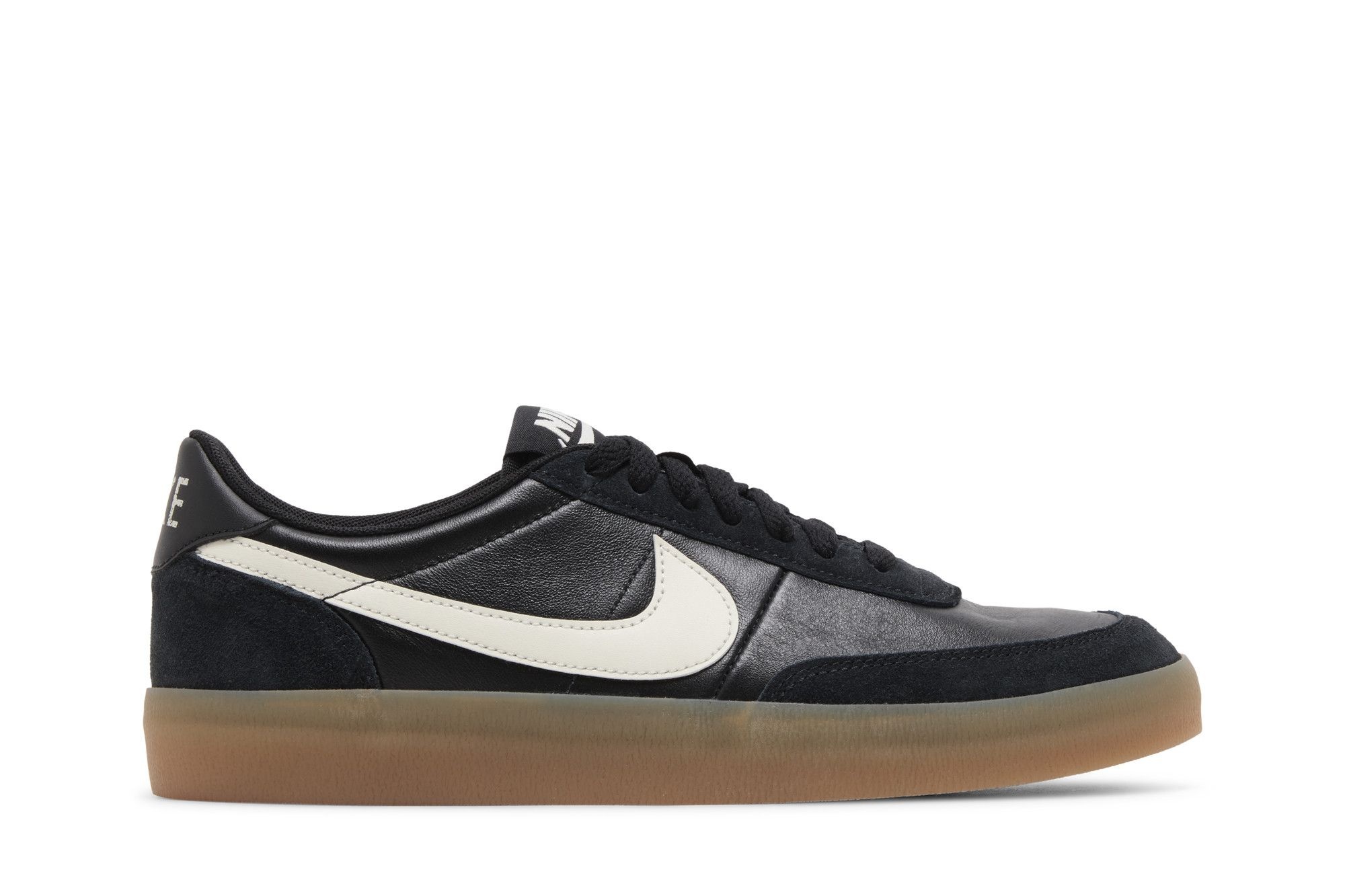 The Killshot is a timeless design from the Swoosh brand, originally released in 1979 as a racquetball and squash sneaker. The Nike Killshot 2 ‘Black' launched in 2012, featuring simple lines and a streamlined black leather base with touches of white on the tongue, heel and Nike Swoosh. A toe guard, padded footbed and classic Gum Yellow outsole complete the look and feel. UPPER MATERIAL Leather